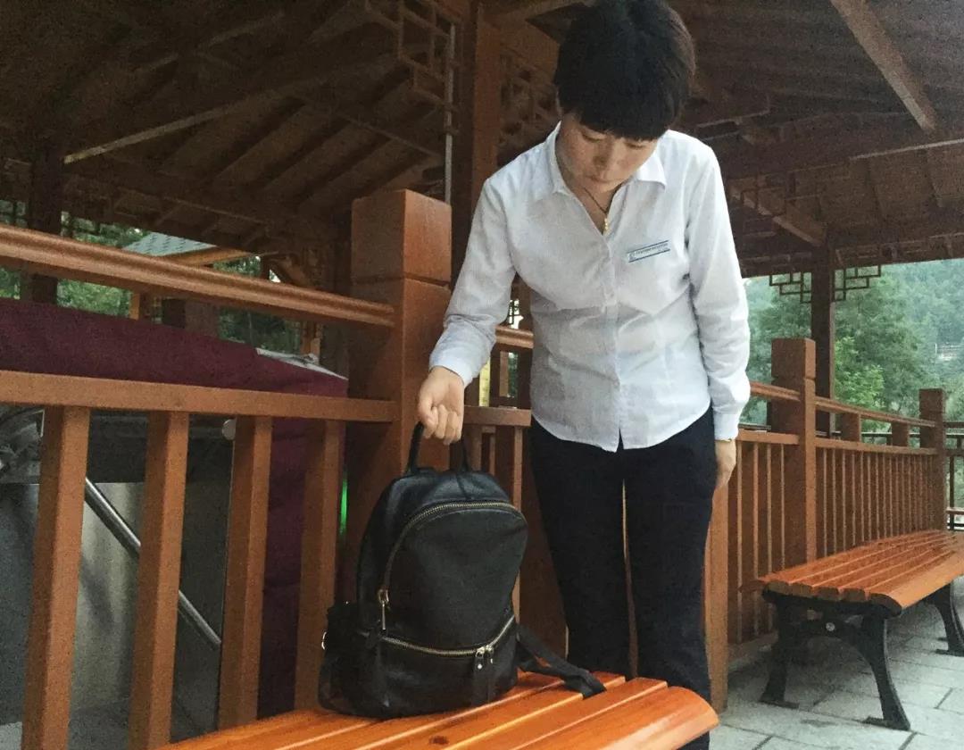 景區(qū)漂流上站的工作人員得知丟包的人找到了,就急忙騎上自己的電動(dòng)車(chē)將包送到王女士手中,王女士拿到包的一瞬間激動(dòng)的說(shuō)不出話來(lái):“謝-謝,太感-謝了!”