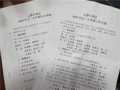 “五一”小長(zhǎng)假已至,云夢(mèng)山景區(qū)提前謀劃、精心部署,緊抓疫情防控工作和旅游安全工作,切實(shí)做到疫情防控與安全生產(chǎn)兩手抓兩手硬,為廣大游客全面筑牢出游安全屏障。