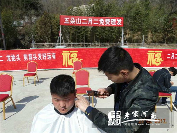 2月27日是農(nóng)歷二月初二,這一天在北方叫做春龍節(jié),在南方叫做花朝節(jié)。民間有二月二龍?zhí)ь^日的說法,并且有理發(fā)的習俗。在河南五朵山景區(qū),今天來了一批特殊的志愿者,他們就是來自南陽市博藝美容美發(fā)專業(yè)學校的50名理發(fā)師。適逢五朵山第17屆春節(jié)民俗廟會最后一天,他們用精湛的理發(fā)技術和耐心的服務態(tài)度,為今天來到五朵山景區(qū)的游客們提供了理發(fā)服務,滿足了游客們“二月二理龍頭”的民俗需求,使游客們收獲了一份意外之喜,也感受到了五朵山春節(jié)廟會的濃濃民俗味。來自河南、湖北、安徽等全國各地市的游客紛紛對他們挑起大拇指。