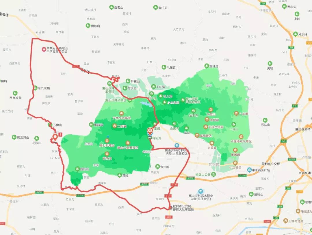 追夢組:70km。詳細(xì)路線:音樂大典-環(huán)嵩山旅游公路-大禹路-G207錫海線-文潁線-水磨灣-營君路-G207錫海線-環(huán)山旅游公路-終點(diǎn)。