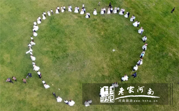 婚禮即將開始,草坪上50對新人,擺出愛心造型,美不勝收!