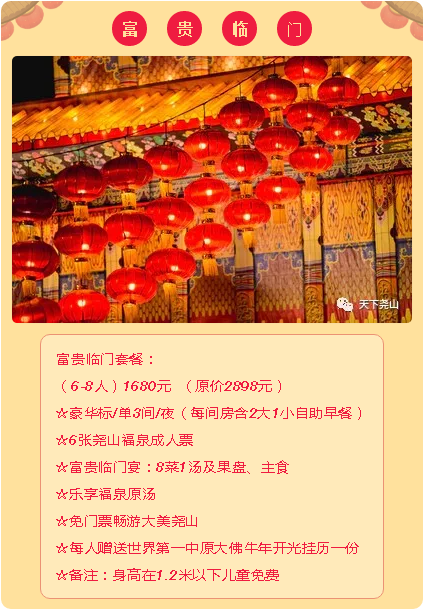 萬里層云,千山暮雪,寒梅怒放,湯泉汩汩。 沙河岸邊,千年原生湯泉,奔涌而來。堯山溫泉國家級旅游度假區(qū),奢享12.36平方公里園林逸景水鄉(xiāng)。以宜人的環(huán)境,優(yōu)良的品質(zhì),備受八方賓客青睞。福泉辛丑牛年新春套餐耀世開啟。新春假期,闔家團(tuán)圓,來堯山溫泉國家級旅游度假區(qū),拜中原大佛、享溫泉頭湯、游冰雪堯山,福泉過大年,幸福一整年。