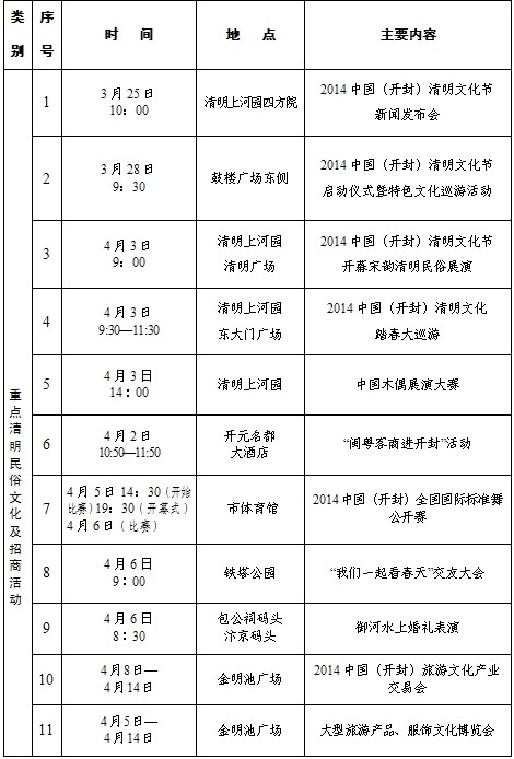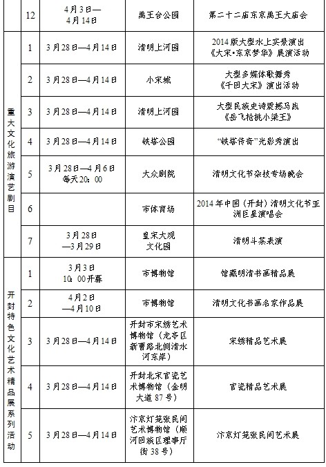 2014中國開封清明文化節(jié)活動日程安排表(一)