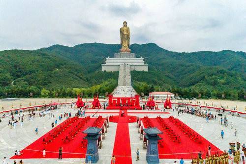 鑼鼓聲聲,雅樂(lè)陣陣,禮樂(lè)相和,錦繡霓裳。8月26日,寶豐酒(丁酉)“佛光七夕 漢風(fēng)古韻”大型集體婚禮在中原大佛景區(qū)隆重舉行。平頂山市政協(xié)副主席、平頂山市社科聯(lián)主席李建華、平頂山市民協(xié)副主席李民、平頂山市民協(xié)副主席任學(xué)、天瑞旅游集團(tuán)股份有限公司副總經(jīng)理剛朝海、鄭州大學(xué)體育旅游研究中心武東曉教授、河南財(cái)經(jīng)政法大學(xué)旅游發(fā)展與規(guī)劃研究所茍自鈞教授,、魯山縣政協(xié)副主席、魯山縣炎黃文化研究會(huì)執(zhí)行會(huì)長(zhǎng)邢春瑜、魯山縣文聯(lián)主席袁占才、魯山縣民間文藝家協(xié)會(huì)主席郭偉寧、寶豐酒業(yè)魯山縣商業(yè)合作公司恒通商行總經(jīng)理孫玉生等領(lǐng)導(dǎo)嘉賓以及來(lái)自新華網(wǎng)、中新網(wǎng)、鳳凰網(wǎng)、中華網(wǎng)、中國(guó)網(wǎng)、央廣網(wǎng)、大公網(wǎng)等50余家新聞媒體的記者以及網(wǎng)絡(luò)直播、100對(duì)新人的親朋好友及現(xiàn)場(chǎng)游客等近5萬(wàn)人共同見(jiàn)證了此次隆重而又盛大的漢式集體婚禮。