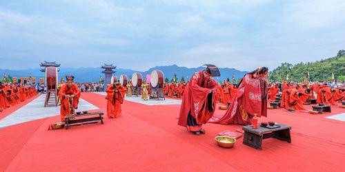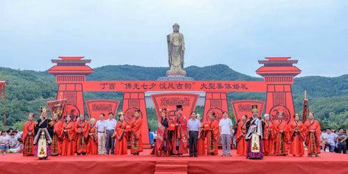 邢春瑜在贊禮辭提到:中原大佛“漢風(fēng)古韻”集體婚禮融佛化婚禮與漢式婚禮于一體,將佛教文化之美、漢式婚禮之美相結(jié)合,又融入“七夕”元素,給人們以視覺和心靈的震撼并祝愿新人夫妻恩愛,白頭偕老。情有自由愛有屬,一朝結(jié)下千種愛,百歲不移半寸心。在漫漫人生路上相依相伴,相濡以沫,休戚與共,風(fēng)雨同舟。他希望新人們能互相學(xué)習(xí),互相支持,互相勉勵,在各自的崗位上都做出優(yōu)異的成績,像荷花并蒂相映美,如海燕雙飛試比高。