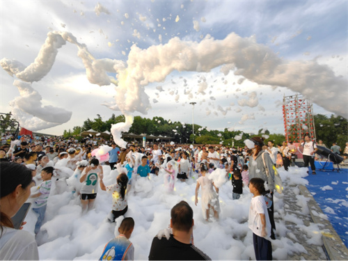 游客在綠博園的泡沫池里玩耍 中牟縣融媒體中心供圖