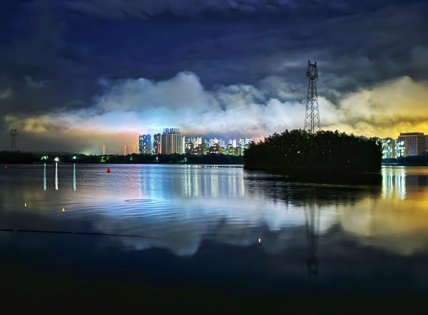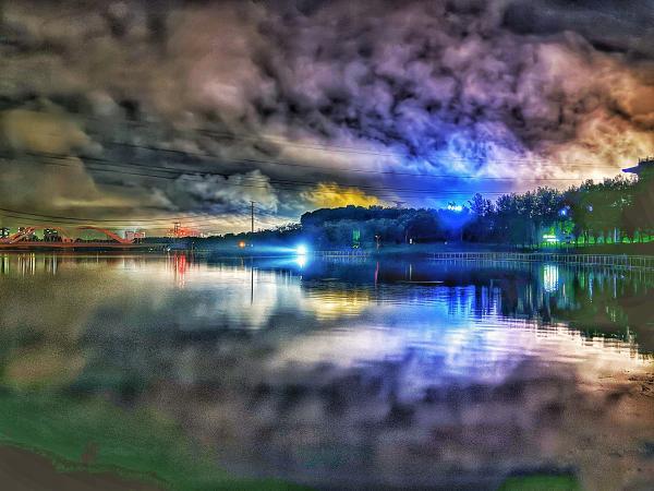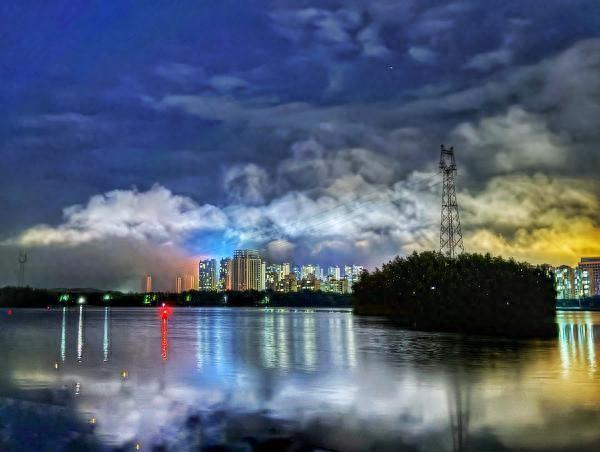 隨著臺風(fēng)“格美”的悄然離去,駐馬店人民公園的傍晚,有一種別樣的美。