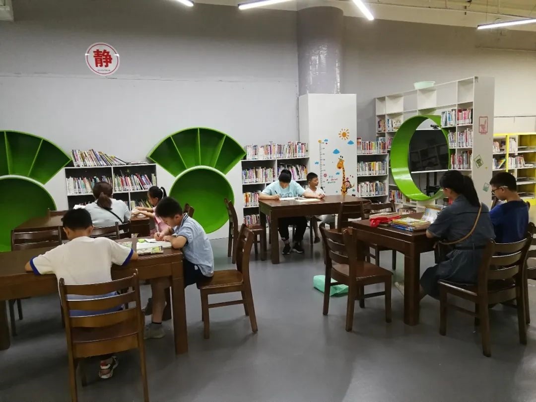 在市圖書館少兒閱讀空間,不時有人前來借書還書。偌大的空間里,書架造型各異,很多家長陪著孩子坐在桌前認真看書。