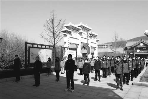 清明節(jié)當天,上午十點嵩山景區(qū)內(nèi)防控警報鳴響,巴士、自駕游車輛集體鳴笛,所有游客以及工作人員低頭默哀,深切哀悼在抗擊新冠肺炎疫情斗爭中的犧牲的烈士和逝世的同胞。
