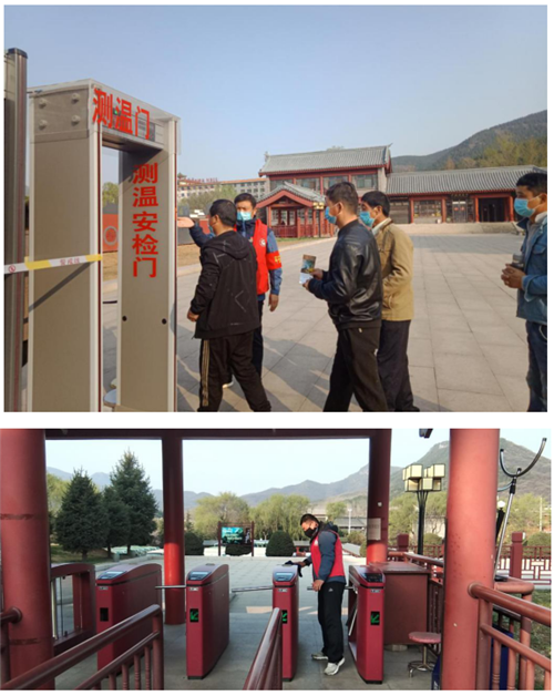 為了做好景區(qū)的疫情防控工作,確保游客安全有序入園,嵩山景區(qū)實行網(wǎng)上預約購票和線下掃碼購票的兩種方式,防止游客聚集。實行電子票入園的無接觸式服務(wù),在景區(qū)入園處設(shè)置體溫檢測點和臨時隔離點,游客只有健康碼為綠色和體溫檢測正常才能入園。同時景區(qū)實行一日五次的環(huán)境衛(wèi)生消殺制度,對景區(qū)游客服務(wù)中心、休息區(qū)、觀光車等公共區(qū)域及基礎(chǔ)設(shè)施進行定時消毒;景區(qū)的觀光車實行半數(shù)滿員,每輛車不超過荷載人數(shù)的二分之一。