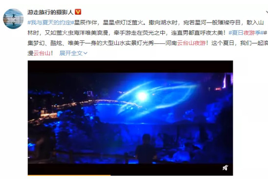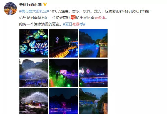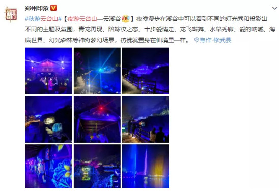 熒光壁畫、河道熒光畫……是云臺山的小仙女,一筆筆繪制。皚皚白雪的冬,漫山花開的春,泉瀑齊鳴的夏,讓云臺山夜游以鮮亮的狀態(tài),出現(xiàn)在游人的面前,定格在美好的記憶中。