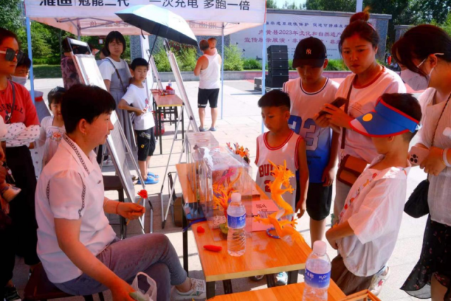 活動中,近40項形式多樣、貼近生活的非遺項目,配同40余塊圖文并茂的非遺版面,由講解員逐一介紹非遺產(chǎn)品,現(xiàn)場有試吃、試喝、試玩,主播現(xiàn)場直播,實現(xiàn)了線上線下共歡樂,有溫度、有深度地向群眾講解了非遺故事,