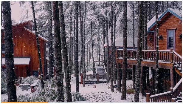 高度還原童話中的林中雪屋,房頂、樹冠上都掛滿了冰雪,呈現(xiàn)冬季森林木屋的浪漫與奇幻,木屋采用重型結構,墻體拐角的處理給人以厚重感,原木本色在雪地中給人感覺尤其溫暖,場景已就緒,就等你來凹造型。