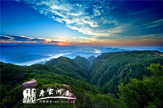 “漫山紅遍,層林盡染”。紅葉、落日、葦草、晚霞交相輝映,似一幅濃墨重彩的油畫。朋友說,秋風(fēng)一吹,黛眉山五彩的山色便一股腦兒的敞開了心扉。
