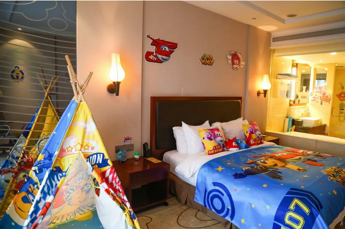 《超級(jí)飛俠》一部深受兒童喜愛的3D動(dòng)畫片,各懷本領(lǐng)的飛機(jī)機(jī)器人們成為眾多孩子們心中的偶像。福泉大酒店現(xiàn)將超級(jí)飛俠元素與傳統(tǒng)大床房相結(jié)合,讓小朋友們與心愛的飛機(jī)機(jī)器人樂迪一起“同床共眠”,在夢(mèng)中開啟絢爛多彩的神奇之旅。