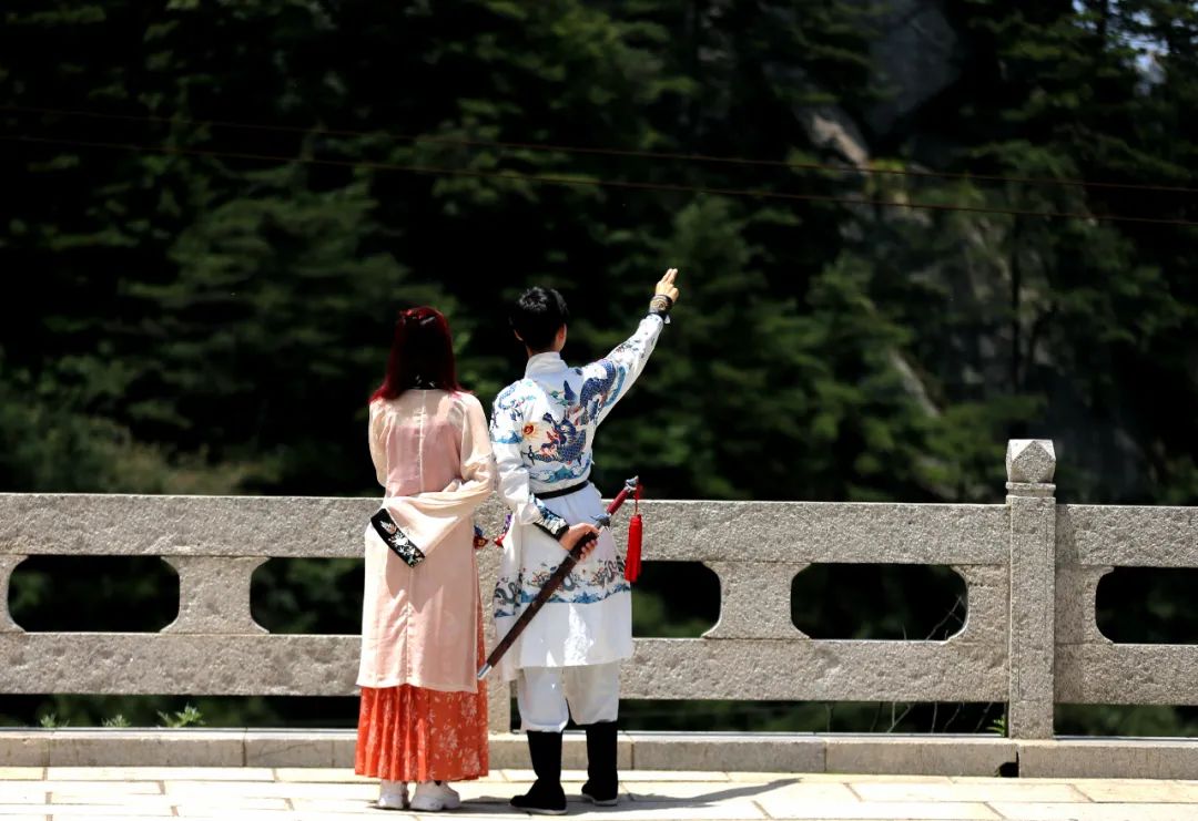 著古代華服,行走于堯山密林山間,斑駁的樹蔭灑在身上。極目遠(yuǎn)眺,霎時(shí)有種仗劍天涯的味道,這個(gè)端午節(jié)可真是韻味十足。