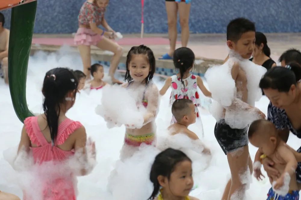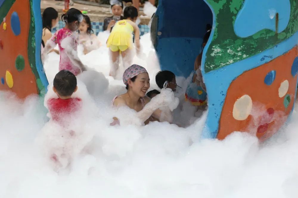 泡泡機(jī)一旦出動(dòng),整個(gè)水池都在射程范圍內(nèi),如同“下雪”一般,瞬間變成一片白色的海洋,小朋友們都迫不及待地沖進(jìn)泡泡營(yíng)造的夢(mèng)幻世界里,開始你追我趕,掀起一陣陣高潮。