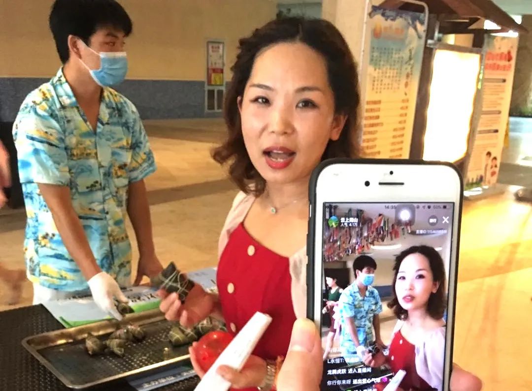 堯山福泉內(nèi)還舉辦了一場(chǎng)異彩紛呈的直播活動(dòng),在微視平臺(tái)“云上堯山”直播間里,主播小姐姐對(duì)園區(qū)內(nèi)游玩設(shè)施做了詳細(xì)講解,帶著大家開啟花式玩水新體驗(yàn):妙趣橫生的泡泡浴、水球大戰(zhàn)、模擬龍舟賽……游客們紛紛參與其中,現(xiàn)場(chǎng)氣氛熱烈。通過(guò)直播這種方式,讓更多朋友隔著屏幕體驗(yàn)到了堯山福泉特有的端午節(jié)日氛圍。