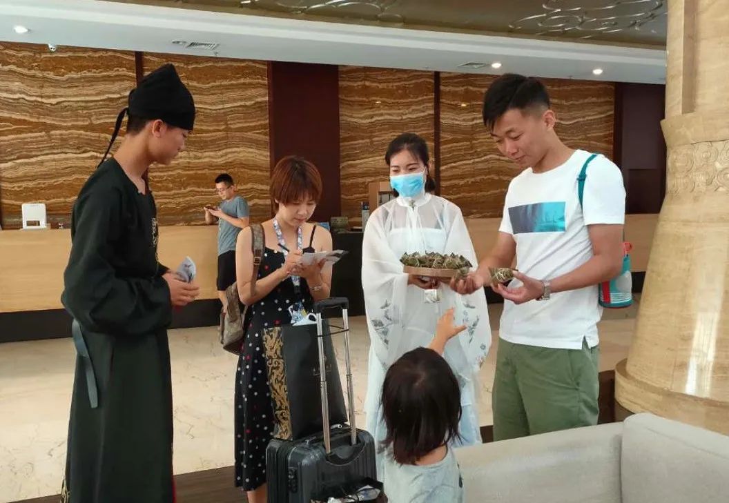 著傳統(tǒng)服飾,過(guò)傳統(tǒng)節(jié)日。端午節(jié)期間,福泉大酒店的“鴻運(yùn)之門”一開啟,游客們就會(huì)被身著古裝的工作人員盛情接待,寓意著辟邪、祈福、納吉的美味香粽和五彩繩也會(huì)被派發(fā)到大家手中,近距離體驗(yàn)清清古風(fēng)韻,感受濃濃端午情。