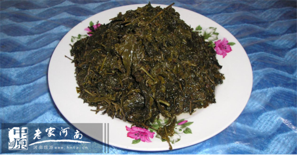 這種菜肴用料取自八里溝當?shù)匾环N野芝麻葉,用熱水抄后,加鹽、蒜汁、香油等涼拌而成,具有爽口、消毒、生津的功效,是八里溝當?shù)厣矫襁^去度過冬季和春初的主打菜。