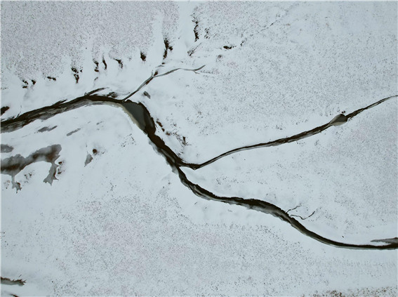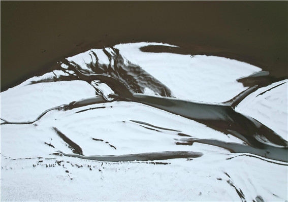 12月11日,一場(chǎng)大雪讓鄭州到處銀裝素裹,從空中看雪中的黃河鄭州段,猶如一幅幅抽象的水墨畫,帶給你不一樣的雪中美景。