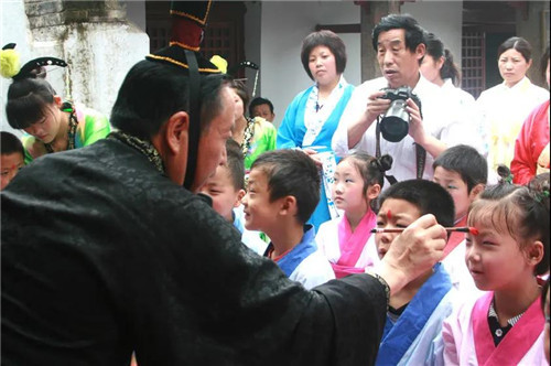 孩子結(jié)束幼兒生活步入學(xué)堂之時(shí)當(dāng)行此禮。此禮通過點(diǎn)聰明痣、誦讀“聰明歌”、拜孔子為師等活動(dòng),讓孩子在喜悅、莊重中的氣氛中獲得“學(xué)生”名分,明白 “天天上進(jìn),年年上進(jìn),終生上進(jìn)”的道理,好的開始是成功的一半。