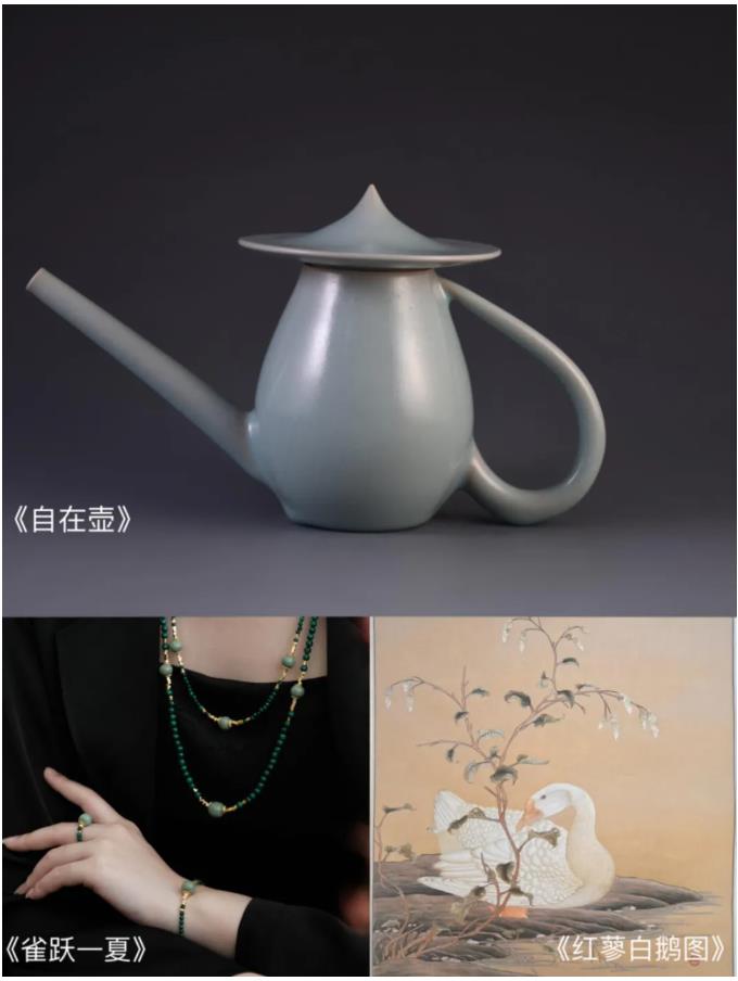 最終經(jīng)過組委會評選,汝瓷燒制技藝代表性傳承人王振芳的作品《自在壺》和張義萌的作品《雀悅一夏》獲得時尚創(chuàng)新獎,汴繡代表性傳承人程曼平的作品《紅蓼白鵝圖》獲得地域特色獎。