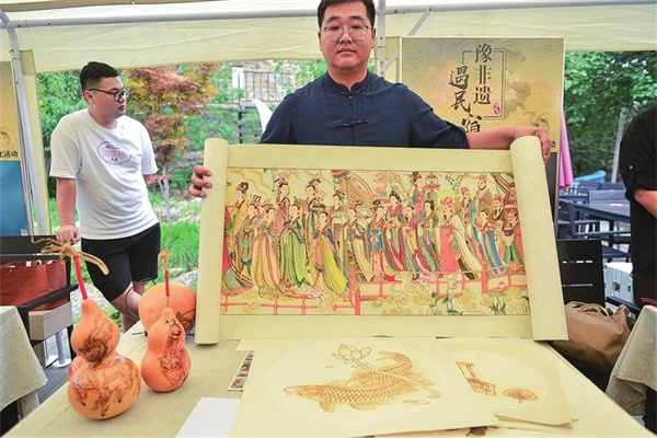 活動(dòng)現(xiàn)場(chǎng),絞胎瓷、民間剪紙、布藝香包、唐三彩、中藥材合香、宮廷杏仁茶、泥塑、烙畫、宋室風(fēng)箏、淮陽(yáng)布老虎、鄭氏麥芽芝麻糖等經(jīng)典非物質(zhì)文化遺產(chǎn)項(xiàng)目與游客見(jiàn)面。