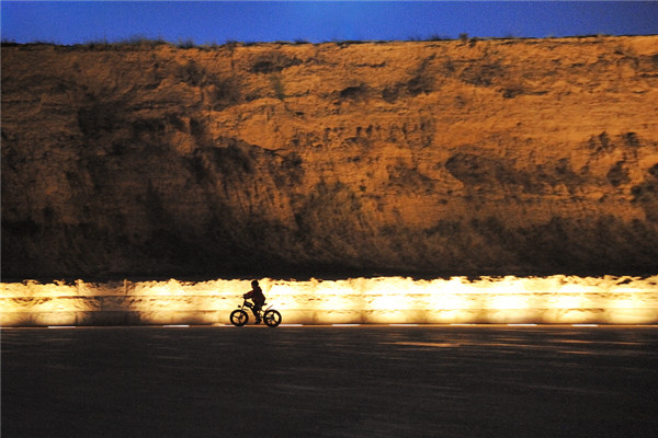 騎單車的孩子在古城墻下經(jīng)過 鄭報(bào)全媒體記者 王秀清 攝