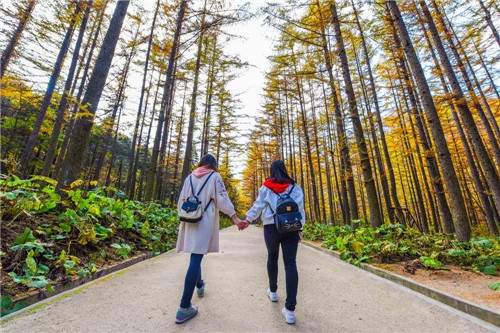 落葉松,特別是深秋,黃櫨葉片經(jīng)霜變,由綠而黃,由淺而深,色彩鮮艷,美麗壯觀。深秋時(shí)節(jié),萬山金黃,層林盡染,是白云山最為壯麗的秋色。