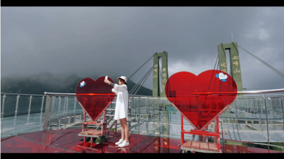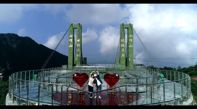 情侶手牽手來到觀音閣許愿,踏步玻璃橋,觀賞七峰山,在最高的云頂之心許下屬于彼此“心連心”的印記,這是屬于愛情結(jié)晶的見證。