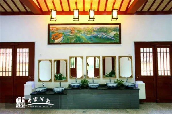 彰顯衛(wèi)生間文化特色進(jìn)一步對(duì)衛(wèi)生間環(huán)境進(jìn)行美化,為游客帶來(lái)更舒適溫馨的體驗(yàn):景區(qū)使用古色古香的紅木雕花門(mén)板替換原有普通復(fù)合門(mén)板;同時(shí)定制極具文化特色的青花瓷座上盆;增設(shè)花木博古架;懸掛園區(qū)風(fēng)景、節(jié)目裝飾畫(huà)、游客文明入廁溫馨提示,大大提升了衛(wèi)生間文化特色。