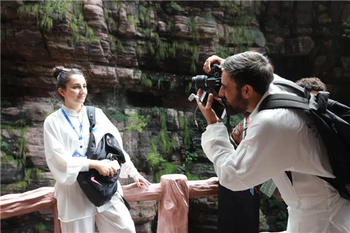 觀摩團首先參觀了云臺山百家?guī)r游客服務(wù)中心,隨后又參觀了云臺山國際友誼林,一株株象征友誼、團結(jié)、合作的“友誼樹”瞬間拉近了云臺山與世界各國大學生們的距離,最后觀摩團成員又參觀了云臺山紅石峽景點,丹崖碧水的峽谷奇觀讓外國友人連連稱贊,紛紛拍照留念,將云臺美景定格在他們心中。