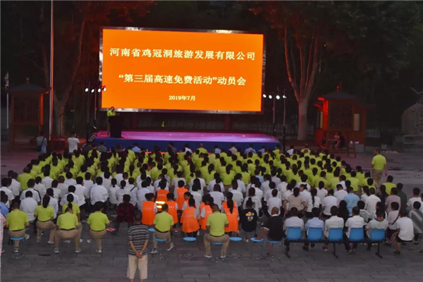 2019年8月1日至20日,欒川縣將舉辦“第三屆高速免費(fèi)活動,也是最后一屆,收官之作,意義重大。為切實(shí)做好各項服務(wù)工作,保障活動順利開展。7月29日晚,雞冠洞旅游發(fā)展有限公司召開“第三屆高速免費(fèi)活動”動員會,對各項工作進(jìn)行安排部署。