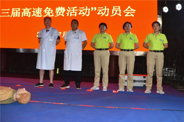 為提高景區(qū)所有旅游從業(yè)者的安全、消防、醫(yī)療常識(shí)和應(yīng)急處理能力,景區(qū)還組織了周邊農(nóng)家賓館、商戶(hù)參加會(huì)議。并邀請(qǐng)參與本次高速免費(fèi)活動(dòng)的相關(guān)單位對(duì)其進(jìn)行培訓(xùn)和動(dòng)員。
