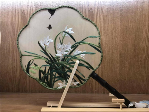 利用針線,在扇面上秀出自己喜歡的圖案,留作紀念。