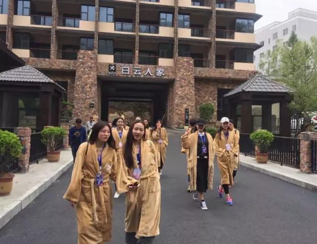 白云山平均海拔1500米以上,5月5日中午氣溫只有十幾度,美女們穿著酒店里厚厚的睡袍來抵御山里的低溫,清一色的“睡袍裝”為白云山也增添了不少情趣。