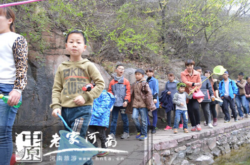 戴著柳帽,吹著柳笛,拿著撈魚的網(wǎng)袋,結(jié)隊(duì)走在八里溝觀景道上,這是最愜意的童年生活.......