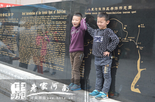 “我們要占領(lǐng)八里溝,你當(dāng)司令,我當(dāng)參謀長(zhǎng)........”兩名小男孩站在八里溝導(dǎo)游示意圖旁,像將軍一樣發(fā)“大話”,