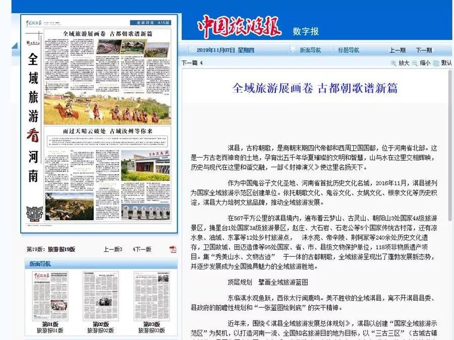 近年來,淇縣以創(chuàng)建國家全域旅游示范區(qū)為契機,以“三文三古三區(qū)”(殷商文化、鬼谷文化、根親文化;古城、古鎮(zhèn)、古村落;景區(qū)、街區(qū)、度假區(qū))為支撐,先后組建了旅游集散中心、旅游綜合執(zhí)法辦公室、全域旅游大數(shù)據(jù)中心,設置了旅游驛站、旅游咨詢中心,完善了全域旅游標識系統(tǒng),推動景、城、鄉(xiāng)三位一體全域旅游發(fā)展格局,逐步形成了“古城朝歌有看頭、A級景區(qū)有玩頭、鄉(xiāng)村旅游有住頭、優(yōu)質(zhì)服務有戀頭、品牌營銷有響頭、旅游扶貧有甜頭、綜合監(jiān)管有管頭、全域發(fā)展有奔頭”的“八頭”效應,叫響了“商衛(wèi)古都·鬼谷圣地”的旅游品牌,吸引了八方游客到此尋古探幽、旅游觀光、休閑度假。