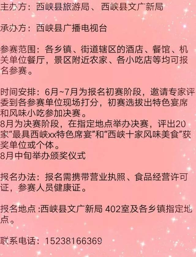 還有一件更讓人熱熱熱、火火火的事情也正在發(fā)生——最近讓人超級期待的“西峽縣首屆旅游特色美食大賽”正在火熱報(bào)名中!