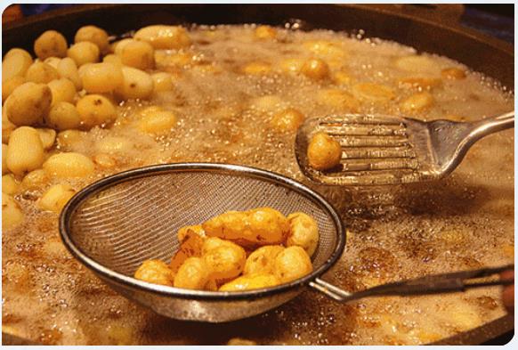 用高山洋芋做原料,炕的金黃外表的土豆加上入口沙沙作香的脆感(把整顆土豆炸脆是需要獨特工藝的),還有麻辣鮮香的秘制辣椒醬混和著獨特調(diào)料的包裹,一口接一口停不下來絕對不為夸張。
