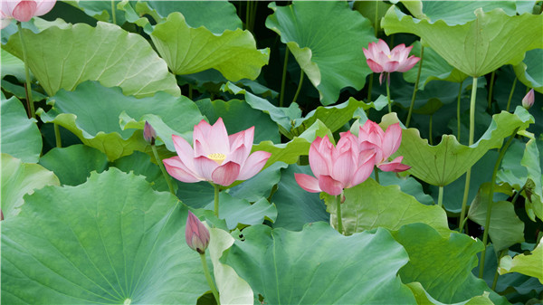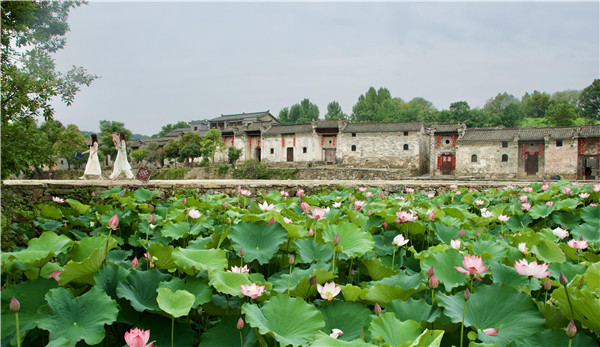 徜徉在古色古香的豫南民居前,荷塘里形如玉盤的碧綠蓮葉層層疊疊,嫣紅、淺粉、純白……各種顏色的荷花宛若曼妙仙女,亭亭玉立,點綴其中,在綠葉的映襯下,顯得更加嬌艷欲滴。清風(fēng)徐徐,荷香陣陣,清新綠意迎面而來,令人心曠神怡。