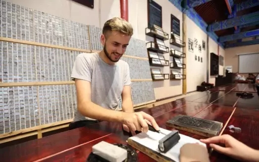 印刷館的工作人員表示,這個外國小伙兒幾天前來到芒碭山游玩,當(dāng)在漢字印刷館體驗了古法印刷之后,他立刻向我們請求,希望能給自己喜歡的那個癡迷漢文化的姑娘親手“寫”一封情書。“看他那么誠懇,我們所有人真是被感動了,于是決定幫幫這個小伙子,同時也讓外國人更深刻的感受一下咱們中國漢字的魅力。”館內(nèi)一名負(fù)責(zé)人說。