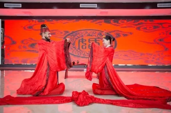 為了延續(xù)這一份美好,也為了讓這個外國小伙和這個癡迷漢文化的姑娘過一個更加印象深刻的情人節(jié),芒碭山旅游區(qū)的工作人員們決定再送他們一份七夕禮物——一次特別的漢婚體驗,讓他們能夠穿上最正宗的漢服、體驗最正宗的漢婚儀式。