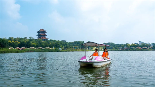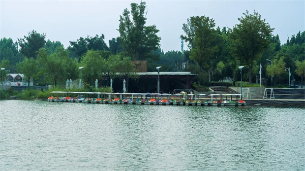 游船碼頭位于華盛軒西側(cè)。走近碼頭,就能看到一排腳踏船整整齊齊地排列在水面上。粉的、綠的、黃的、藍(lán)的…多種顏色,可以隨意選擇。