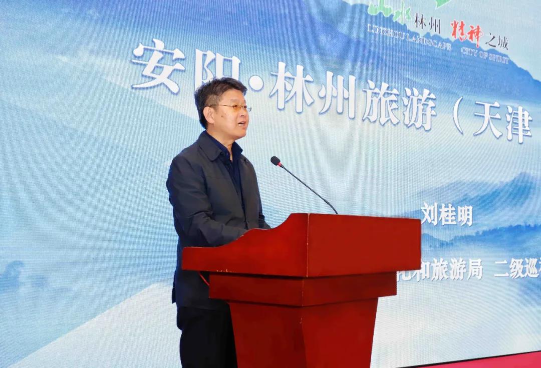 劉桂明在致辭中說,這次旅游推介和交流活動,送來了安陽·林州豐盛的旅游大餐,相信一定會吸引眾多的天津旅游企業(yè)和市民到安陽·林州體驗別樣的城市風情。同時對我們來講也是一次傳經(jīng)送寶和很好的學(xué)習機會,為兩地進一步交流互動、加深友誼、增進合作搭建了很好的平臺。希望借此宣傳推介活動,進一步推動兩地的文化旅游合作,實現(xiàn)資源共享、優(yōu)勢互補、市場互動、共同發(fā)展。