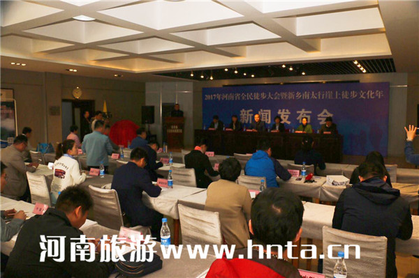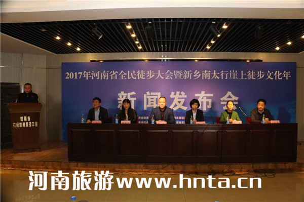 4月6日上午,2017年河南省全民徒步大會(huì)暨新鄉(xiāng)南太行崖上徒步文化年新聞發(fā)布會(huì)在河南省社體中心四樓會(huì)議室舉行。河南省旅游局旅游促進(jìn)處處長(zhǎng)湯雁、河南省體育局群體處處長(zhǎng)趙峻、河南省體育局社體中心主任陳真、副主任夏麗娟、新鄉(xiāng)市體育局副局長(zhǎng)王建華、新鄉(xiāng)市外事僑務(wù)旅游局黨組成員、紀(jì)檢書(shū)記呂新安、新鄉(xiāng)南太行旅游有限公司總經(jīng)理王紅昌、副總經(jīng)理郭耀、河南戶外聯(lián)盟賽事中心李敏等,以及國(guó)家級(jí)、省市級(jí)新聞媒體記者參加了本次發(fā)布會(huì)。