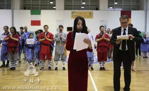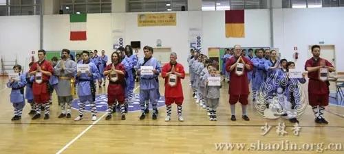 活動(dòng)開始前,由主持人分別用中文和意大利語介紹了此次活動(dòng)的意義。接著,釋延輝用中意雙語向大家轉(zhuǎn)達(dá)了少林寺方丈釋永信大和尚對(duì)大家的問候和祝福,希望大家在考核中獲得優(yōu)異的成績。隨后,全場為Luigi Amadio先生默哀1分鐘。