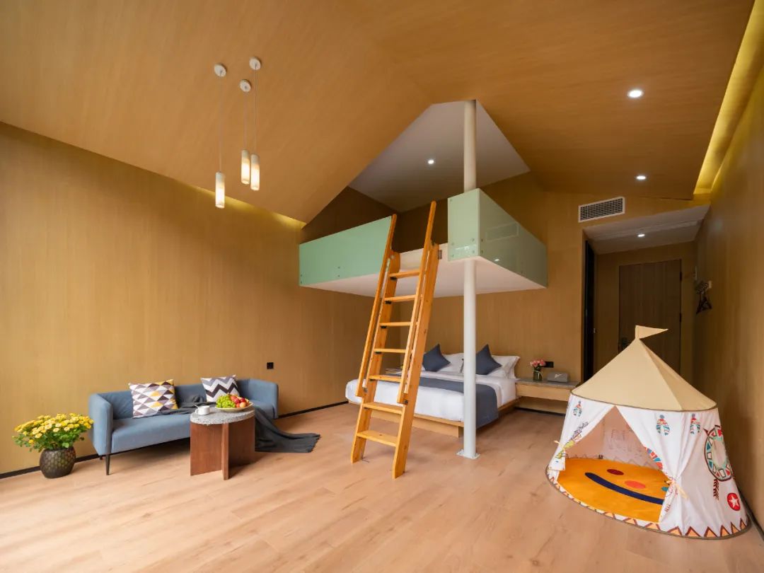 汐來有嶼,你來有我。溫馨的布局、秋千、小滑梯等兒童娛樂設施深得帶娃家庭的喜歡。